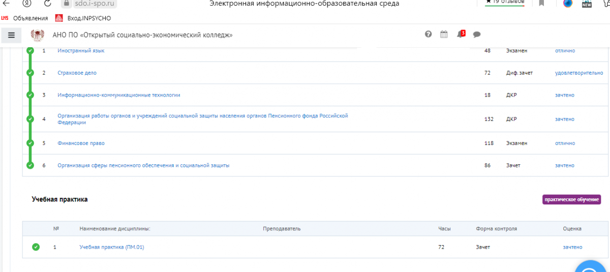 Таким образом, практика в Открытом социально-экономическом колледже играет важную роль в подготовке студентов к профессиональной жизни и обеспечивает их конкурентоспособность на рынке труда.